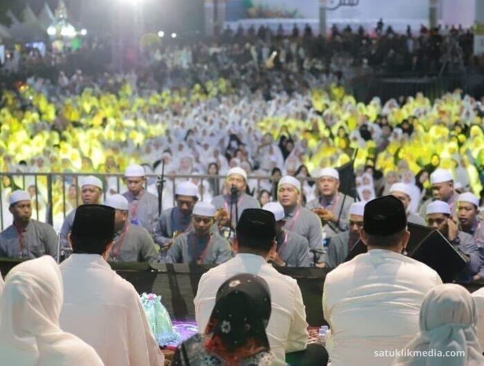 SATUKLIKMEDIA.COM, WAJO – Bupati Wajo, H. Andi Rosman, dan Wakil Bupati Wajo, H. Baso Rahmanuddin, tampak haru saat menghadiri acara As’adiyah bersalawat bersama majelis Az Zahir di Panggung MQKI 2025, Lapangan Merdeka Sangkang, Kabupaten Wajo, Kamis (2/10/2025). Momen penuh haru ini terjadi ketika nama Nabi Muhammad SAW diserukan, hingga meneteskan air mata di hadapan ribuan santri dan masyarakat.