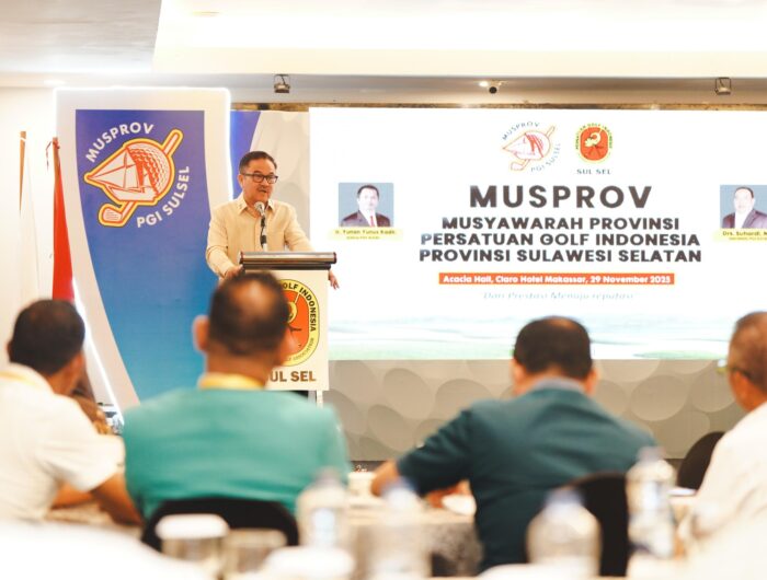 SATUKLIKMEDIA.COM, MAKASSAR – Sekretaris Daerah Provinsi Sulawesi Selatan (Sekda Sulsel), Jufri Rahman, secara resmi membuka Musyawarah Provinsi (Musprov) Persatuan Golf Indonesia (PGI) Sulsel yang mengusung tema “Dari Prestasi Menuju Reputasi.”