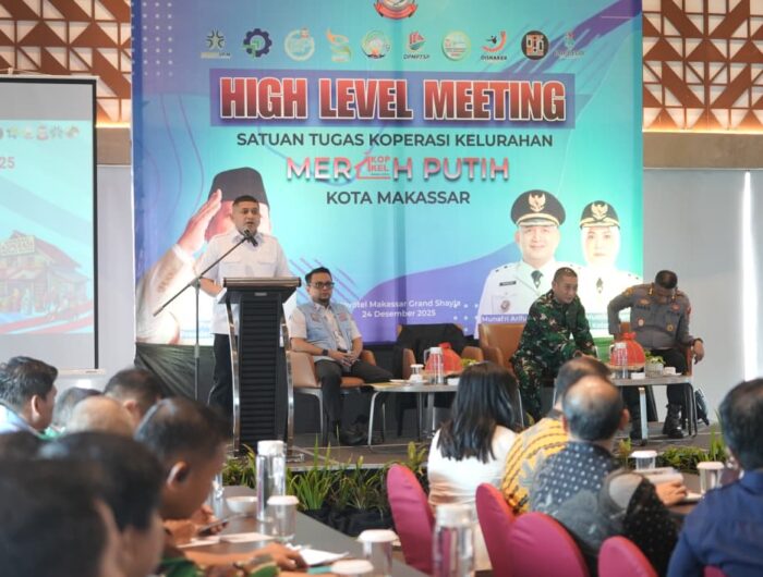 Penegasan tersebut disampaikan Munafri saat memberikan sambutan pada High Level Meeting bertema “Kolaborasi Pengembangan Koperasi Kelurahan Merah Putih Kota Makassar” yang diselenggarakan oleh Dinas Koperasi dan UKM Kota Makassar, bertempat di Novotel Grand Shayla Makassar, Rabu (24/12/2025).