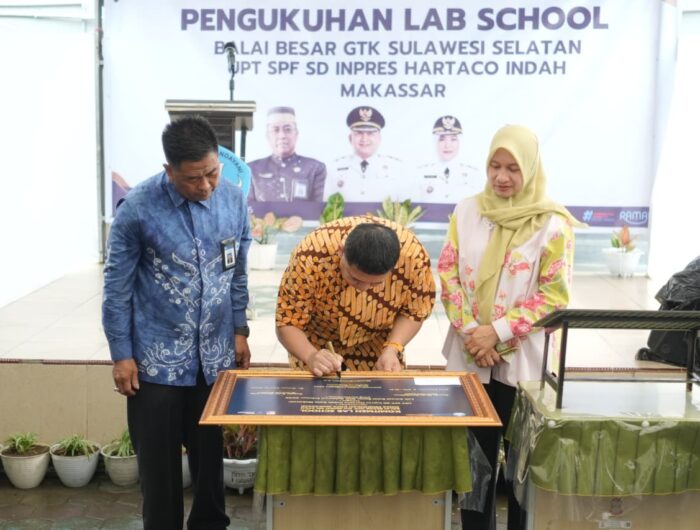 Penegasan tersebut disampaikan Munafri Arifuddin, yang akrab disapa Appi, saat memberikan sambutan sekaligus menandatangani prasasti pengukuhan Lab School Balai Besar Guru UPT SPF SD Inpres Hartaco Indah dan Tenaga Kependidikan Provinsi Sulawesi Selatan, yang berlokasi di Jalan Daeng Tata, Kompleks Hartaco Indah, Kota Makassar, Sabtu (7/2/2026).