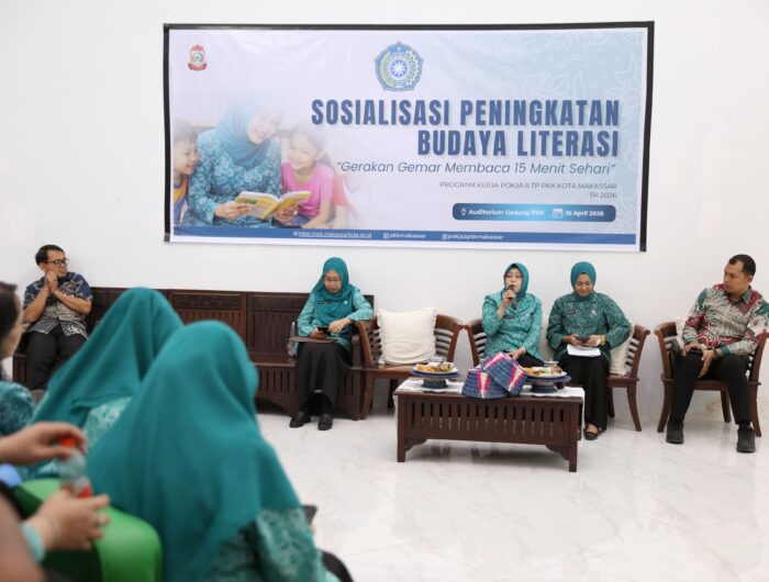 SATUKLIKMEDIA.COM, MAKASSAR – Tim Penggerak (TP) PKK Kota Makassar menggelar sosialisasi peningkatan budaya literasi bertajuk Gerakan Gemar Membaca 15 Menit Sehari di Auditorium Gedung PKK Kota Makassar, Kamis (16/4/2026).
