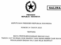 SATUKLIKMEDIA.COM, JAKARTA – Pemerintah menerbitkan Keputusan Presiden Republik Indonesia (Keppres) Nomor 34 Tahun 2025 tentang […]